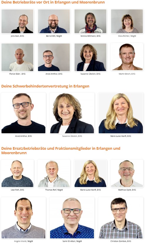 Als starke und unabhängige Betriebsratsfraktionen sind wir von den Mitarbeitern am Standort Erlangen G und Nürnberg Moorenbrunn gewählt worden um dein individuelles Thema zu lösen, aber auch die Interessen aller Mitarbeiter vor Ort zu vertreten – ganz gleich ob Werkstudent, Tarifmitarbeiter, ÜT oder Führungskraft.